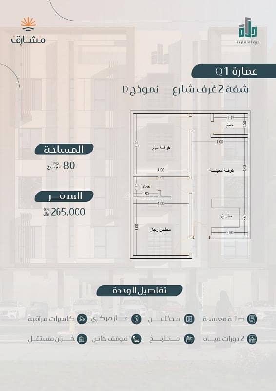 • شقق غرفتين مساحة 80 متر بسعر 250 ألف شامل الضريبة