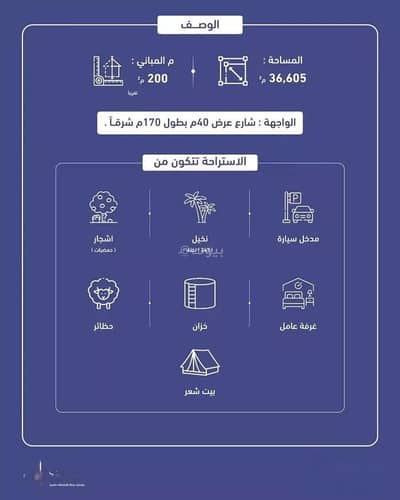 مداخل سيارات + نخل ( 234 نخلة ) + أشجار ( حمضيات ) + بيت شعر +غرفة عامل + خزان + جظائر .