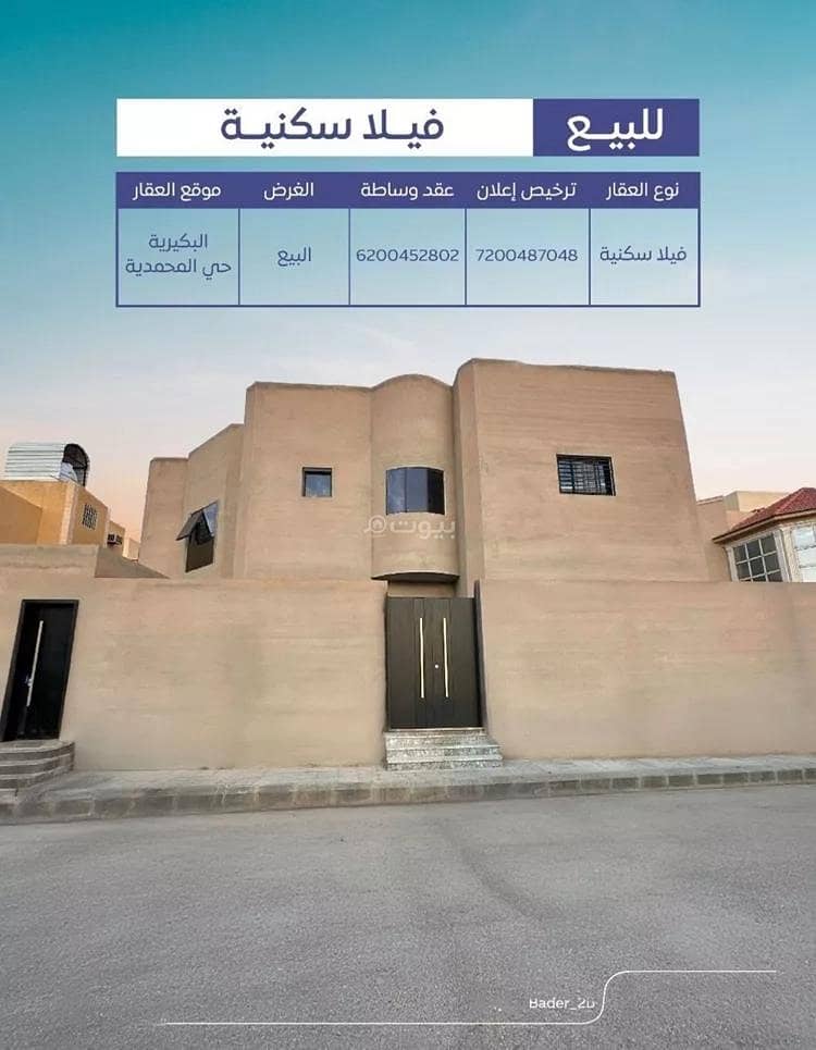 فيلا للبيع في شارع شارع إبن زيدون, حي البديعة, مدينة البكيريه, منطقة القصيم