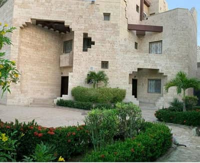الدور الأرضي: صالون + غرفة طعام + غرفة مكتب/نوم + صالة معيشة + مطبخ + حمامين