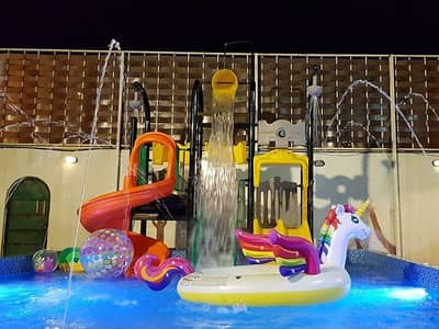 المميزات: عدادات كهرباء ومياه مستقلة – مسبح للكبار + مسبح للأطفال بألعاب مائية – غرفتين + مطبخ + بيت شعر حديث بإطلالة