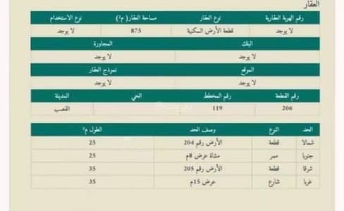يتم جلب الموقع والتحقق منه بواسطة الهيئة العامة للعقاروصف موقع العقار حسب الصك:قطعة الأرض السكنية رقم 206 من المخطط رقم 119 الواقعة بالقصب .