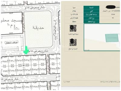 للبيع ارض في صبياء مخطط نخلان بصبيا مساحه 479. 18 متر شارع 18م٢ واجهة جنوبيه