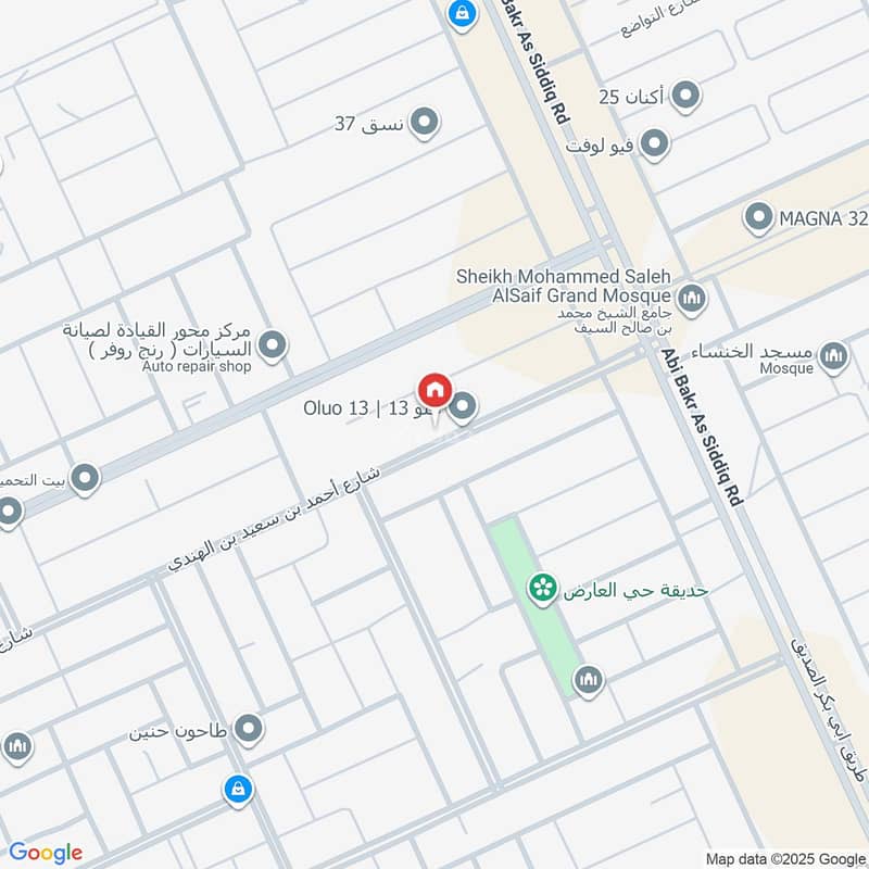 يتم جلب الموقع والتحقق منه بواسطة الهيئة العامة للعقاروصف موقع العقار حسب الصك:حي العارض بمدينة الرياض مساحة الوحدة من الأرض 67.59 متر وتختص من المنافع والأجزاء المشتركة بمساحة 47.45 متر