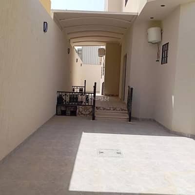 تتكون منالدور الارضي يتكون من من مجلس وصالة ومقلط وغرفتين نوم وثلاثة حمامات ومدخلين