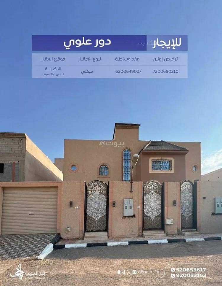 دور للإيجار في شارع الرعاية, حي القادسية, مدينة البكيريه, منطقة القصيم