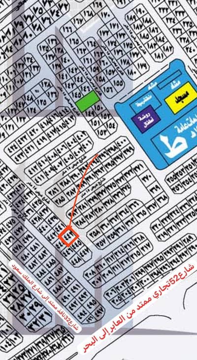 المدخل مباشر من شارع 52 الممتد من عابر القارات ونافذ الى البحر