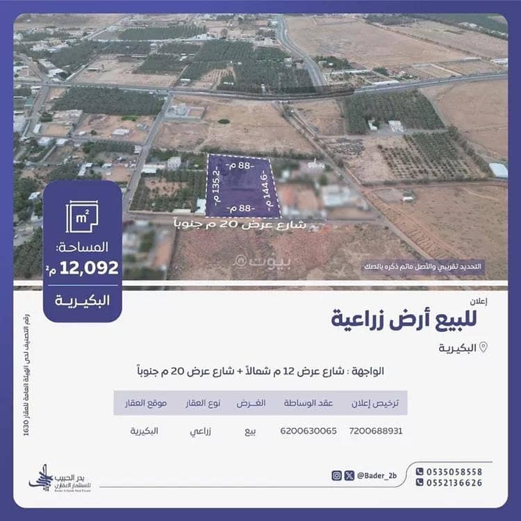 يتم جلب الموقع والتحقق منه بواسطة الهيئة العامة للعقاروصف موقع العقار حسب الصك:المزرعة الواقعه فى شرق محافظة البكيرية .