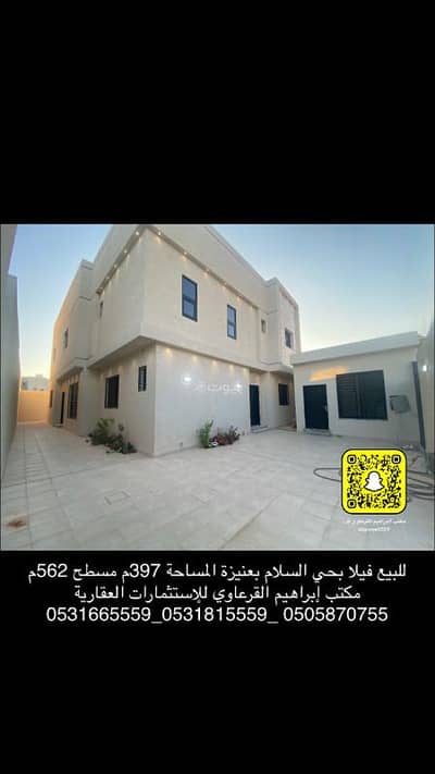 للبيع فيلا بناء شخصي بحي غرب السلام بعنيزة