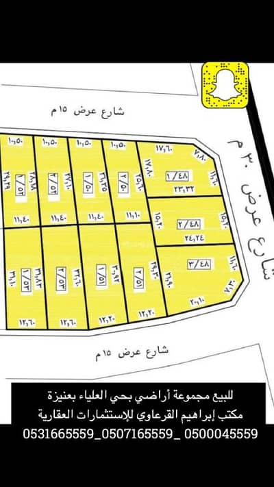 للبيع مجموعة أراضي بحي العليا بعنيزة