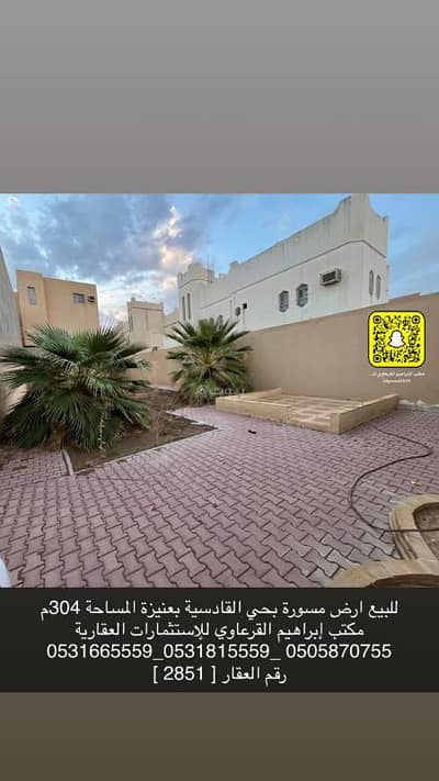 للبيع أرض مسورة بحي القادسية بعنيزة