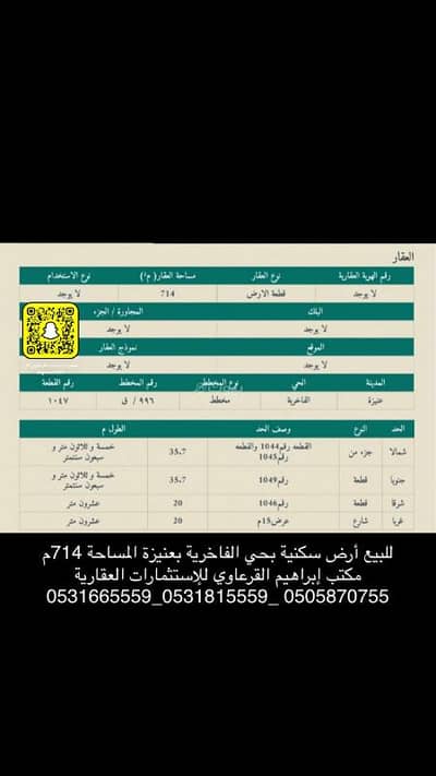 للبيع أرض سكنية بحي الفاخرية بعنيزة