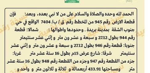للبيع أرض سكنية بحي جنوب الشقة بمدينة بريدة