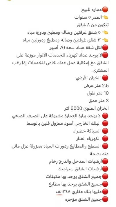 - نوع العقارعمارة سكنية
