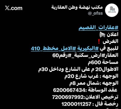 الغرض للبيع في #البكيرية#الامل_مخطط_410
