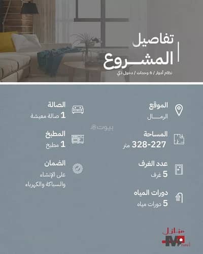 أدوار فاخرة للبيع بحي الرمالتعلن منازل العقارية عن بدأ البيع في مشروع أصل المعمار الواقع بحي الرمال الغربي عبارة عن أدوار مفصولة بمساحات متنوعة تناسب جميع الاحتياجات ويعتبر هذا المشروع خيارًا لمن يسعى لتجربة سكنية مريحة وعصرية . الأسعار تبدا من 895,000المميزات خزانات مياه مستقلة بعداد خاص موقع مميز قريب من الخدمات العامة بنية تحتية متكاملة في الموقع دخول ذكي سمارت هوم تأمين ملاذ تأسيس مصعد