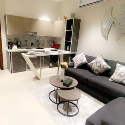 شقة فاخرة بصالة معيشة وغرفة نوم ومطبخ امريكي