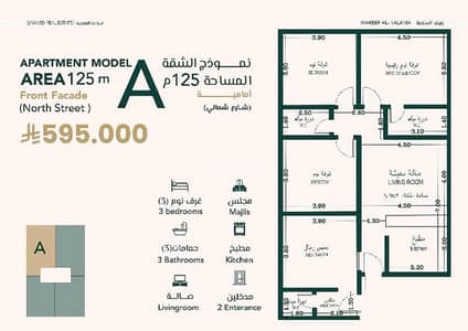 المساحة: 125 م² – واجهة شمالية (على شارع عرض 25م)