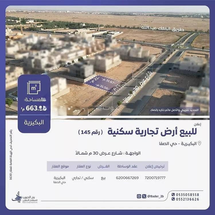 للبيع أرض تجارية سكنية ( رقم 145 )
