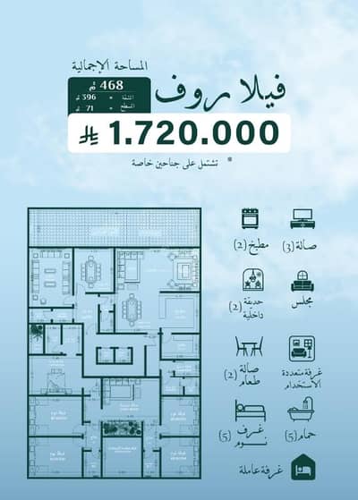 فيلا روف فاخرة للبيع بمساحة واسعة و اطلاله خلابة