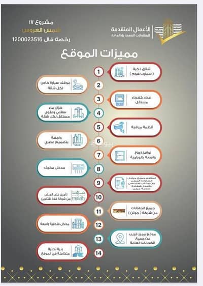شقق للبيع – مشروع رقم 17 شمس العروس – حي مريخ – جدة