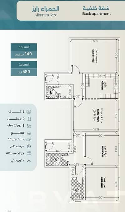المساحة: 140 م ²