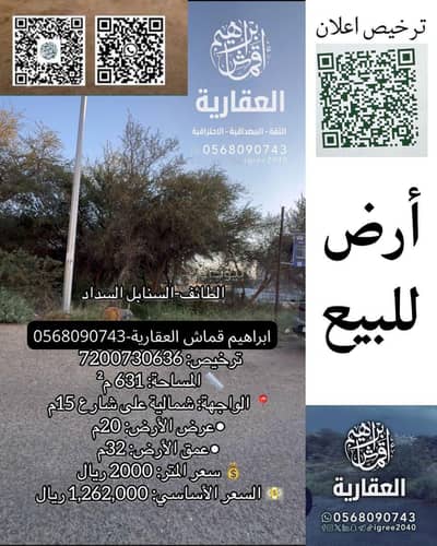 أرض سكنية للبيع في السداد 699م شارعين