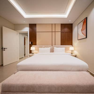 Japandi-designed luxury apartment with a private yard, cozy coffee corner, and 70” Smart TV. Enjoy access to a gym, landscaped gardens with fountains, and community amenities. Ideally located on Jaber Road, across from King Fahd Sports City, near the National Guard Hospital, Mohammed Al-Faqih Hospital, cafés, restaurants, supermarkets, and close to the metro. Perfect for leisure or business travelers seeking style, comfort, and convenience.