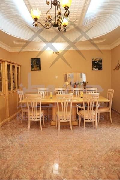 الدور الأرضي: 5 غرف + 4 دورات مياه + صالة + مطبخ