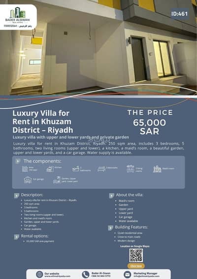 الإيجار السنوي: 65,000 ريال سعودي (دفعة واحدة).