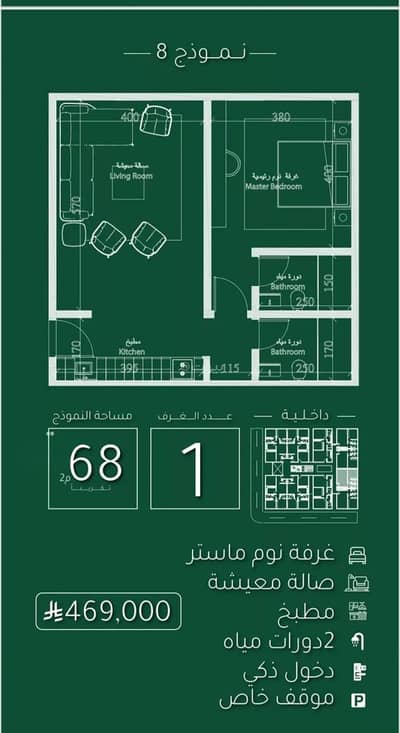 اسديو اماميه مساحه68م بسعر 489الف
