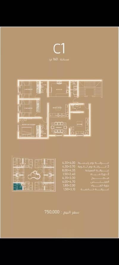 المساحات والأسعار:5 غرف160 م² – 750,000 ألف