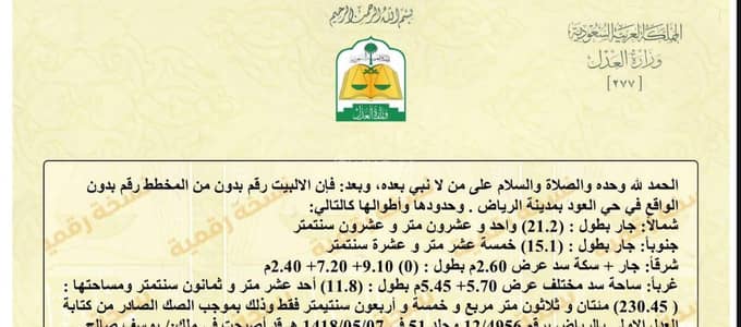 شاهد تفاصيل الاعلان في منصة ديل وصف موقع العقار حسب الصكالمدينة: الرياضالحي: العود