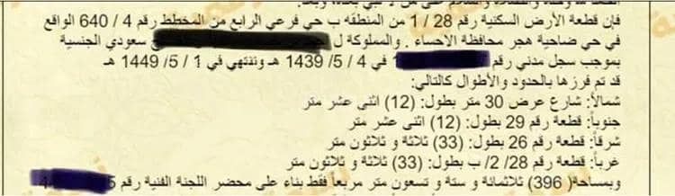 يتم جلب الموقع والتحقق منه بواسطة الهيئة العامة للعقاروصف موقع العقار حسب الصك:حي فرعي الرابع من المخطط رقم 4 / 640 الواقع في حي ضاحية هجر محافظة الاحساء .