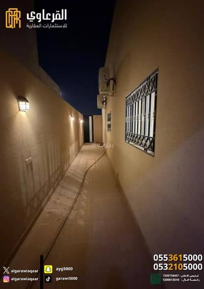 الدور الارضي: حوش مع مشب خارجي واجهه زجاج, مجلس رجال مخدوم بدورة مياه, مقلط, صاله مخدومة بدورة مياه, مجلس نساء, مطبخ مع مستودع