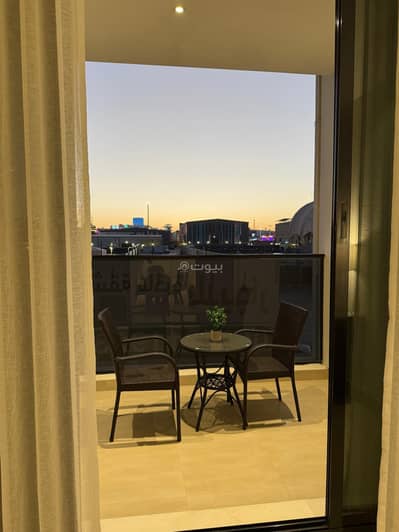 - بلكونة واسعة مطلة على البوليفارد مع جلسة فاخرة
