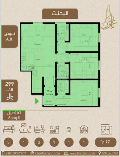 بارعون للتطوير العقاري تعلن عن طرح مشروعها الخامس الواقع في حي الريان مكون من :