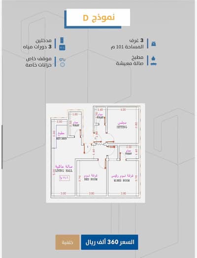 النموذج D (يتكون من 3 غرف)