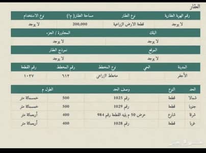 يتم جلب الموقع والتحقق منه بواسطة الهيئة العامة للعقاروصف موقع العقار حسب الصك:قطعة الارض الزراعية رقم 1027 مخطط الزراعى 612 الواقع فى مركز الأجفر.