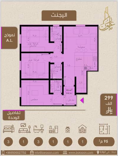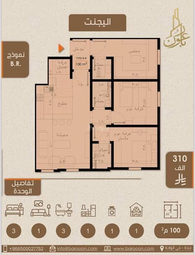 - 3 غرف نوم فسيحة، توفر مساحة واسعة للعائلة والضيوف.