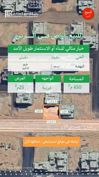 يتم جلب الموقع والتحقق منه بواسطة الهيئة العامة للعقاروصف موقع العقار حسب الصك:قطعة الارض رقم 448 من المخطط رقم ق / ر/ 376 محافظة الرس .