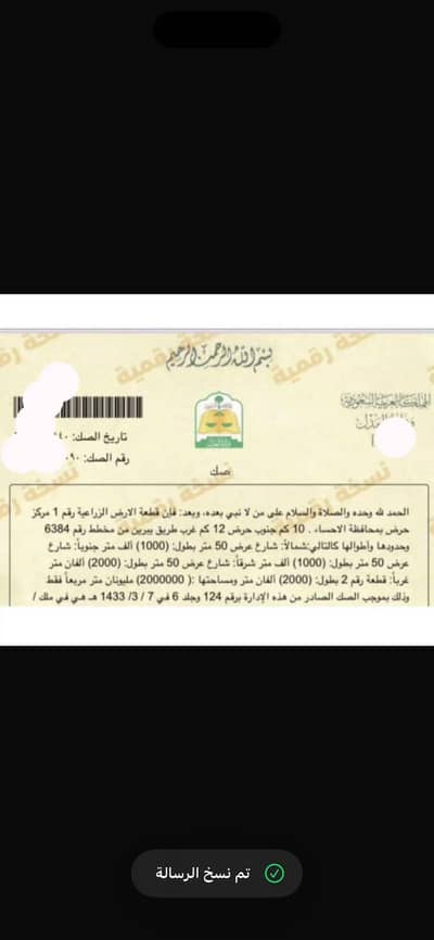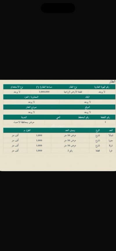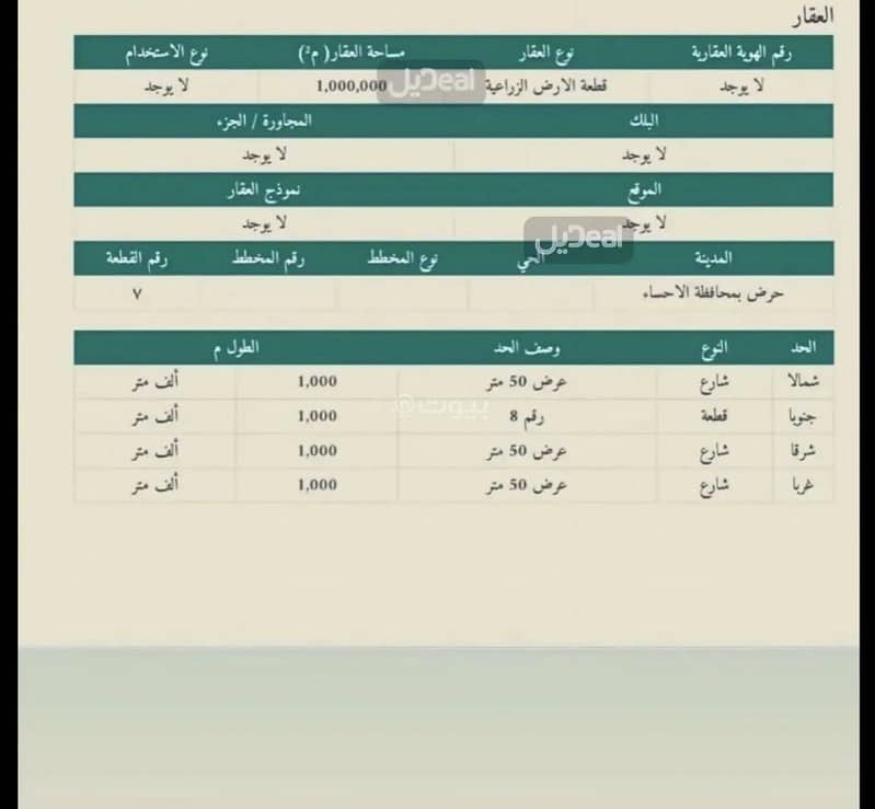 يتم جلب الموقع والتحقق منه بواسطة الهيئة العامة للعقاروصف موقع العقار حسب الصك:قطعة الارض الزراعية رقم 7 مركز حرض بمحافظة الاحساء . 46 كم غرب مفرق حرض 2.5 كم شمال سكه الحديد من مخطط رقم 6304