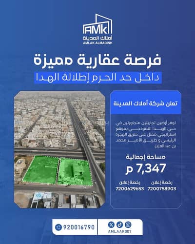 ارضين تجاريتين متجاورتين في حي الهدا النموذجي مطلة على طريق الهجرة الرئيسي وعلى طريق الأمير محمد بن عبدالعزيز