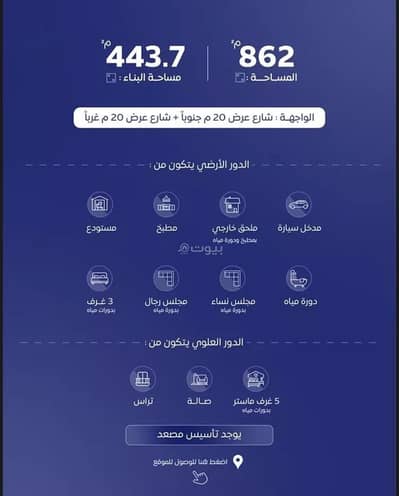 الـــواجهة: شارع عرض 20م جنوبا + شارع عرض 20م غربا