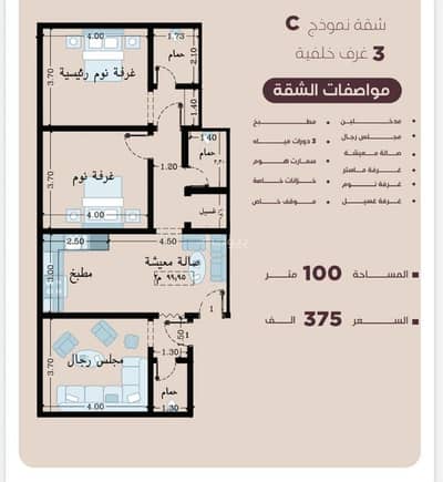 • المساحة: 100 م²