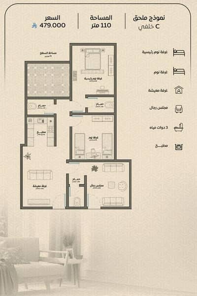 غرفة نوم رئيسية - غرفة نوم - غرفة معيشة - مجلس رجال - 3 دورات مياه - مطبخ