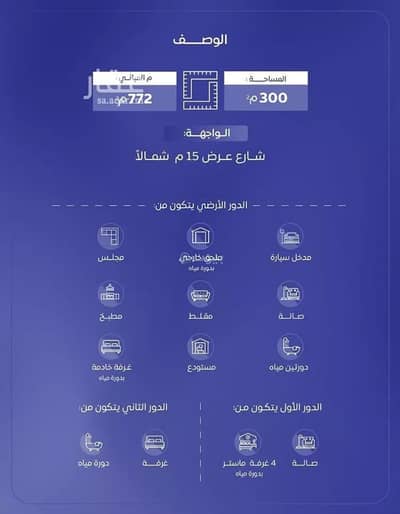 مدخل سيارة + ملحق خارجي ( بدورة مياه ) + مجلس + مقلط + صالة + مطبخ + دورتين مياه + مستودع + غرفة خادمة بدورة مياه
