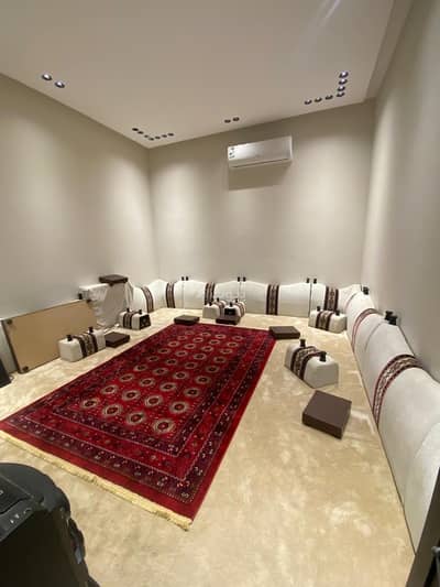 الدور الأرضي ،مجلس و مقلط و ملحق مع دورة المياه صالة مع دورة المياه + غرفة سائق