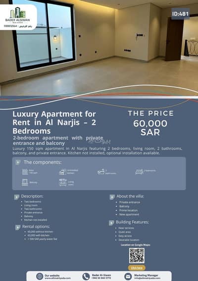 Luxury Apartment for Rent in Al Narjis – 2 Bedrooms & Living Room
