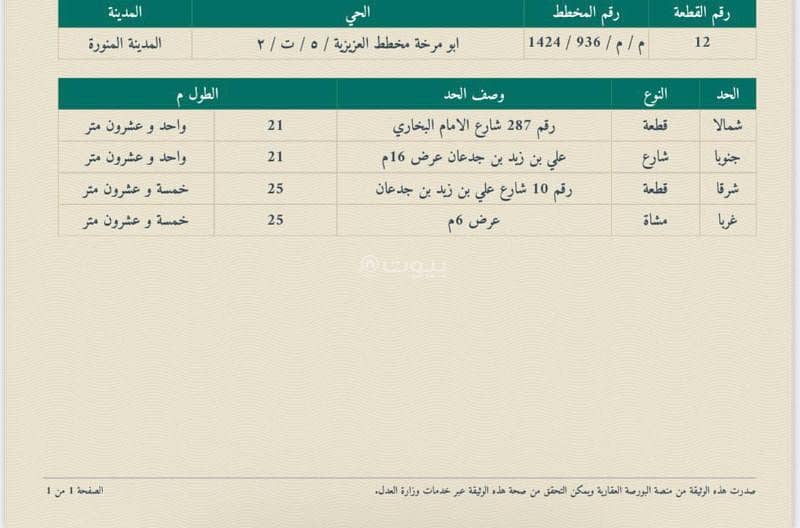 يتم جلب الموقع والتحقق منه بواسطة الهيئة العامة للعقاروصف موقع العقار حسب الصك:حي ابو مرخة مخطط العزيزية / 5/ ت/ 2 بمدينة المدينة المنورة .
